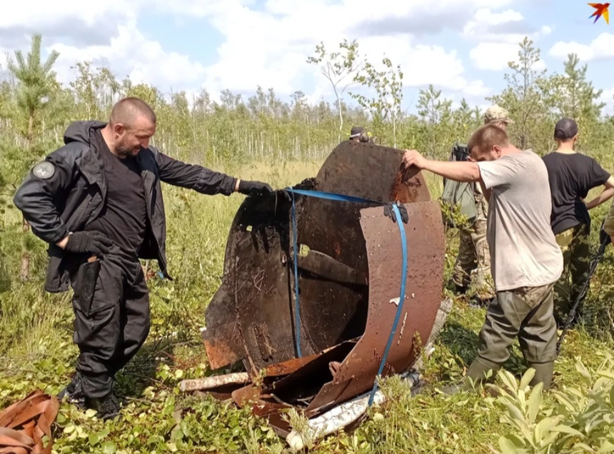 Фрагменты кабины самолёта времён Второй мировой войны извлекли из болота в Невельском районе 7 августа в ходе 15-й Международной молодёжной патриотической Вахты памяти – 2022, посвященной герою Советского Союза Маншук Маметовой.