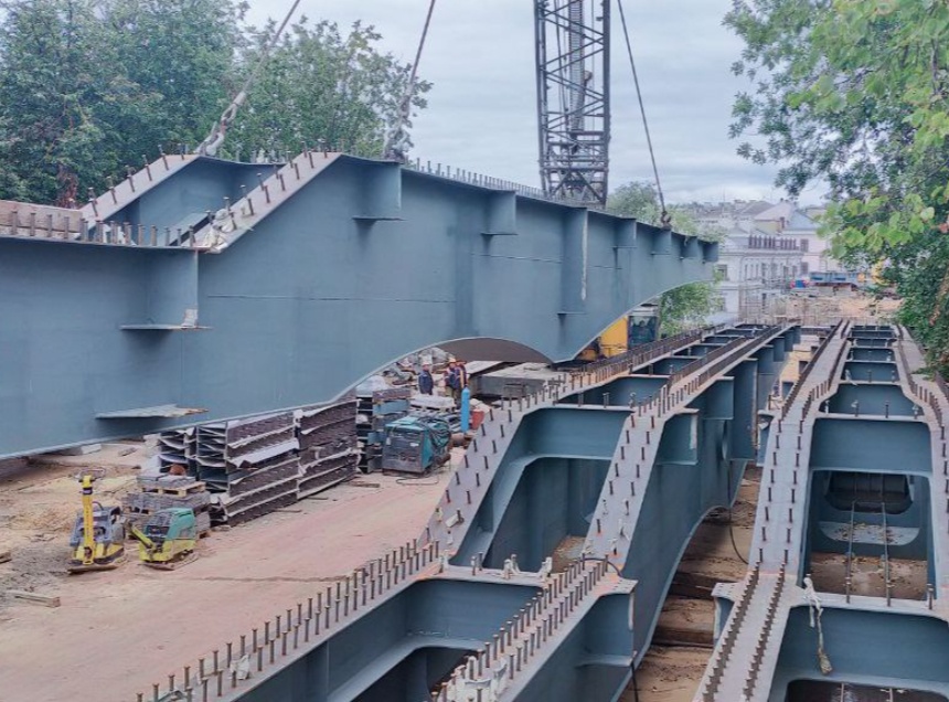 «Каждая балка весит порядка 28-29 тонн. Всего их четыре. Во время второго этапа будем устанавливать ещё четыре. Работы впереди очень много. Пришлось увеличивать количество рабочих на объекте. Сейчас здесь около 70 специалистов», – отметил он.