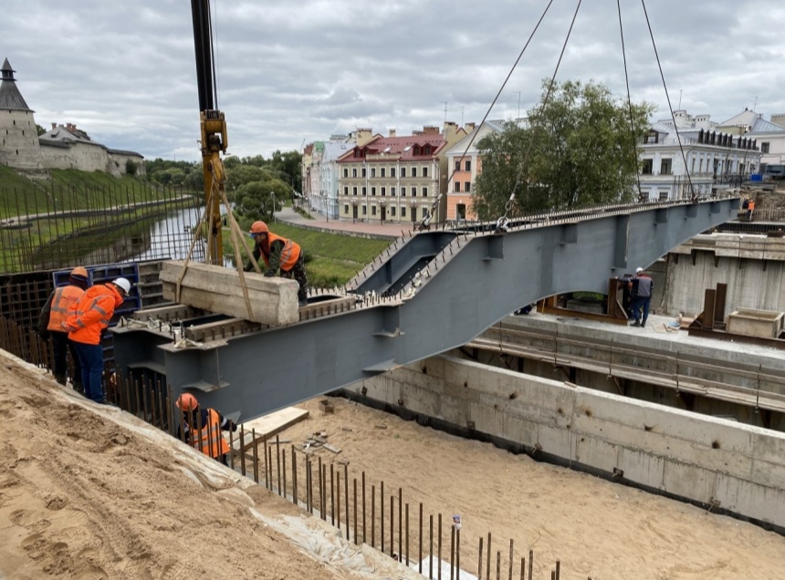 В Пскове первую балку «нового» Троицкого моста установили на свое место. Монтаж пролетного строения стартовал 13 сентября, сообщил в своем Телеграм-канале глава городской администрации Борис Елкин.
