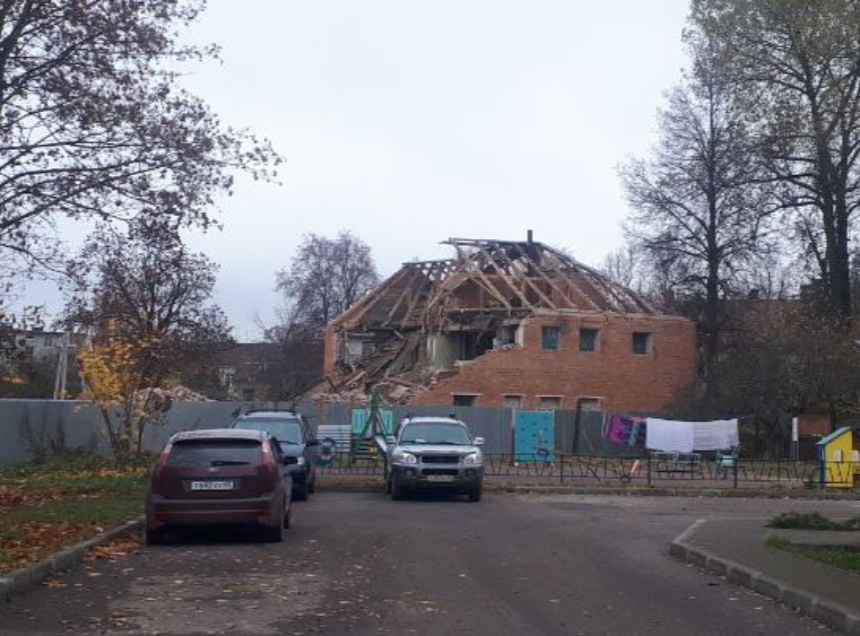 В настоящее время рабочие разобрали крышу здания. Специалисты также произвели демонтаж части постройки.