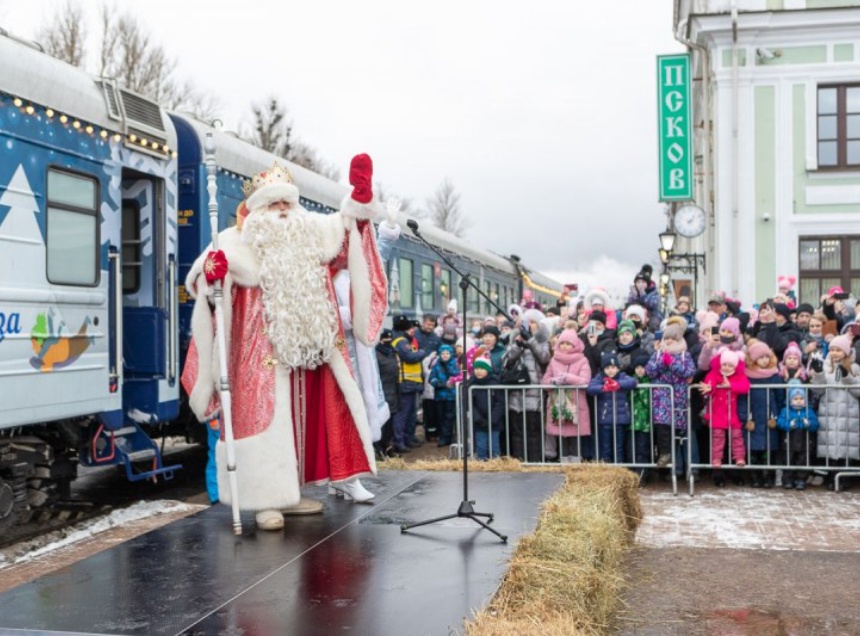 Волшебный поезд зимнего сказочника пробудет в Псковской области два дня. 29 декабря состав прибудет в Великие Луки и Дно, а 30 декабря остановится в Пскове.