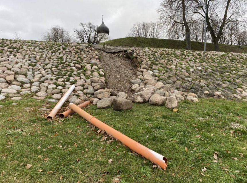 На участке набережной реки Великой в Пскове, на спуске с улицы Георгиевской, заменят водосточные трубы. Также здесь проведут устройство дренажа. Об этом в своем Телеграм-канале сообщил глава Пскова Борис Елкин.
