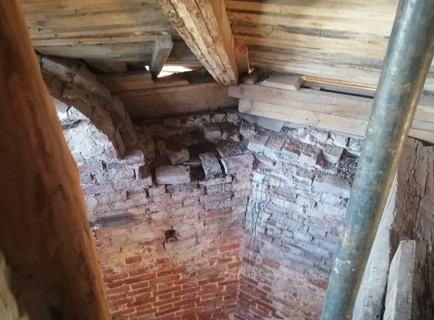 В организации отметили, что оценку масштаба предстоящих работ провели после демонтажа кровли восьмерика верхнего яруса колокольни.