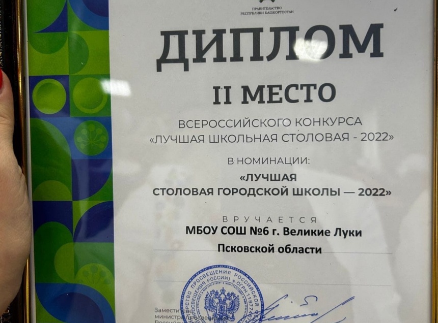 Великолукская школа №6 имени Героя Советского союза А.В. Попова заняла второе место в номинации «Лучшая столовая городской школы» на всероссийском конкурсе «Лучшая школьная столовая – 2022». Об этом на своей странице в социальной сети «ВКонтакте» сообщил глава Великих Лук Николай Козловский.