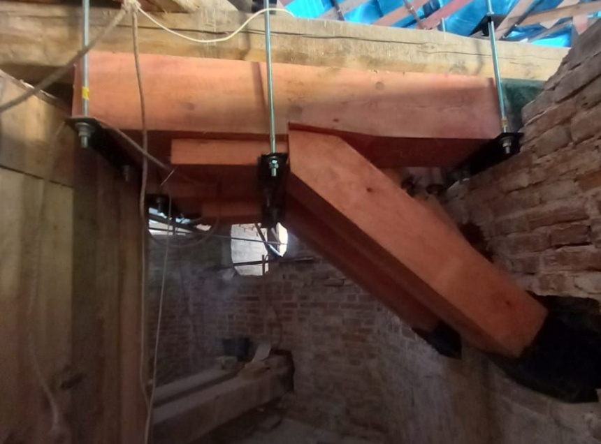 «Обнаружено, что балки были уложены без использования гидроизоляционного материала, на кирпич. В этих местах зафиксировано особенно сильное разрушение древесины», – подчеркнули в АНО «Возрождение».