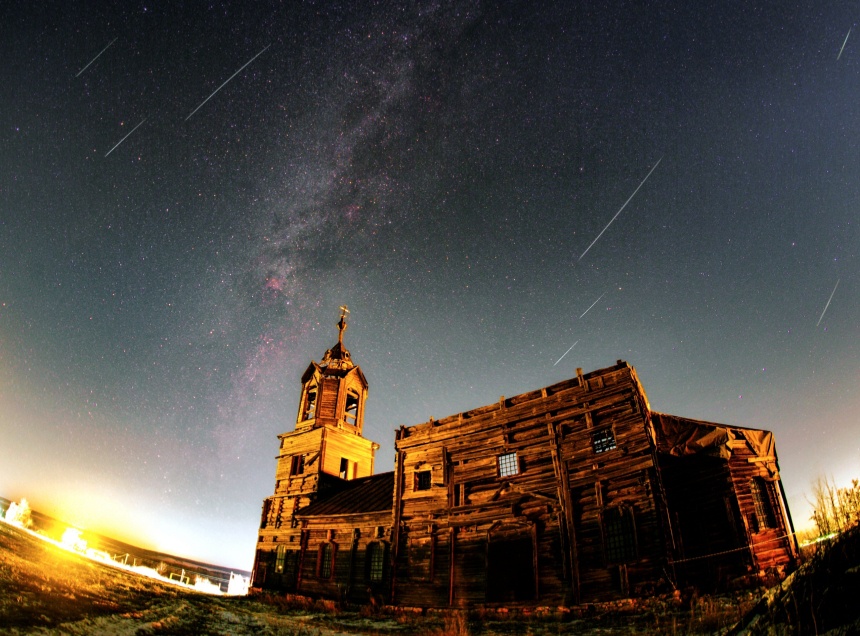 Помимо метеорного потока Петр Митрофанов также поделился таймлапсом звездного неба над Михайловской церковью в Самарской области.