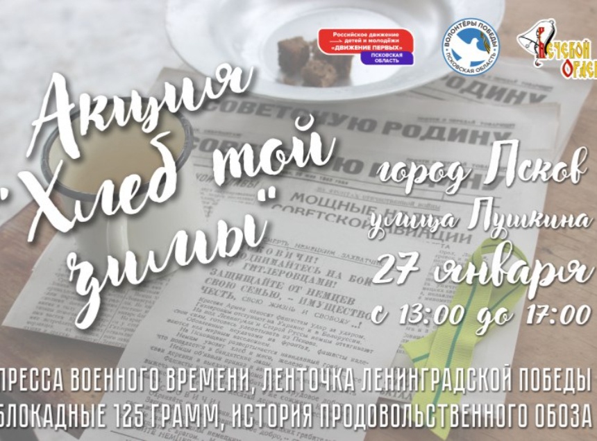 27 января уже в восьмой раз в Пскове пройдет патриотическая акция «Хлеб той зимы». Об этом «Псковской правде» сообщили в пресс-службе правительства Псковской области.