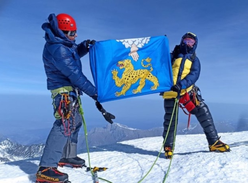 Трое туристов соверишили «турбо» восхождение на гору Казбек в Грузии и водрузили там флаг Псковской области. Об этом на своей странице в «ВКонтакте» сообщил один из них, Сергей Карпушкин.