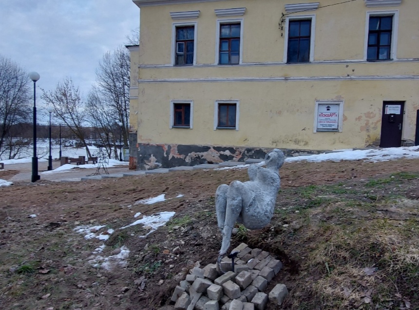 О появлении нового арт-объекта стало известно из группы «Псков Сегодня» в социальной сети «ВКонтакте». Местная жительница уточнила, что фигуру вынесли из галереи современного искусства «Дом на набережной» и установили около здания.