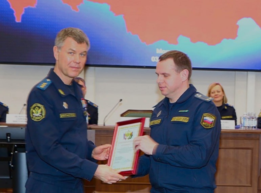 Диплом 3-й степени главному судебному приставу Псковской области Сергею Колесникову вручил директор Федеральной службы судебных приставов Дмитрий Аристов.