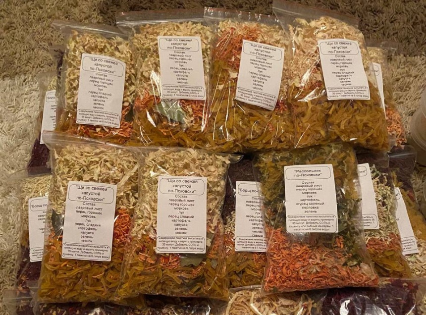 По её словам, в зону специальной военной операции суп доставляется в сухом виде, в вакуумных пакетах. Алёна Ключерова отметила, что сначала псковские активистки сушат готовые ингредиенты в специальных сушилках, а после выкладывают получившиеся смеси в пакеты, вакуумируют и отправляют на фронт.