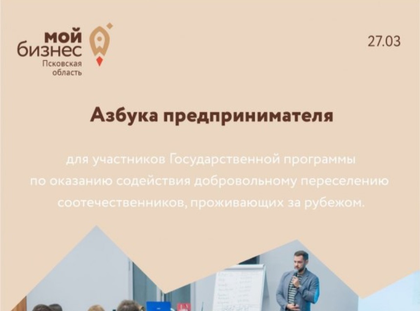 Серию бесплатных тренингов «Азбука предпринимателя» организуют на базе Центра «Мой бизнес» Псковской области с 27 марта. Мероприятие реализуют в рамках национального проекта «Малое и среднее предпринимательство и поддержка индивидуальной предпринимательской инициативы», сообщили «Псковской правде» в пресс-службе правительства региона.