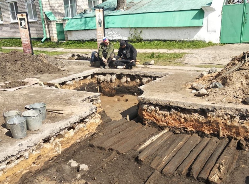 В Печорах у церкви Сорока мучеников раскопали деревянные мостовые. Об этом сообщается в Телеграм-канале «Псковская археология».