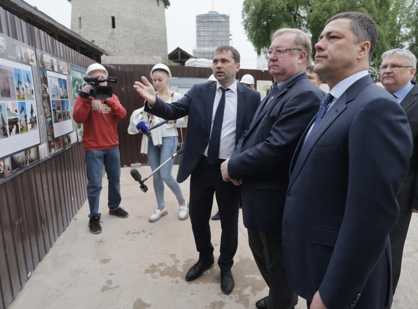 Ход ремонтно-реставрационных работ объектов Ансамбля Псковского кремля оценили председатель попечительского совета публично-правовой компании «Фонд развития территорий» Сергей Степашин, который 16 мая находится с рабочей поездкой в регионе, и губернатор Псковской области Михаил Ведерников. Об этом «Псковской правде» сообщили в пресс-службе областного правительства.