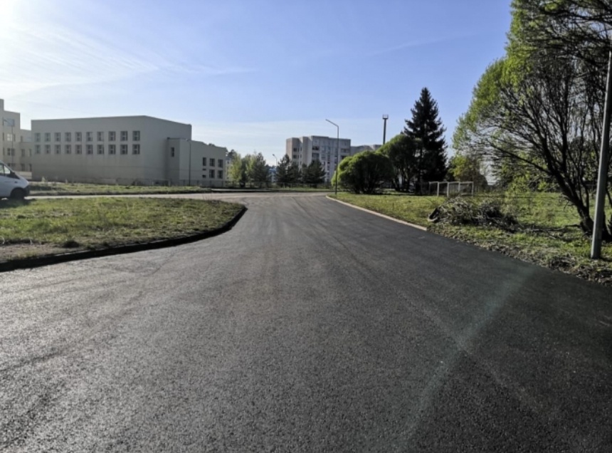 Дорожники также заменили покрытие на разворотной площадке, автомобильных стоянках и заездных карманах остановок автобусов и укрепили обочины.