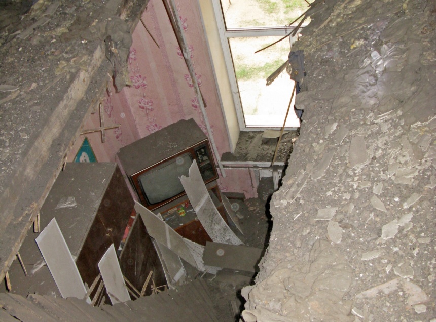 В момент происшествия в квартире на втором этаже находилась пожилая женщина. Она чудом вышла из комнаты до того, как обвалился потолок, и не пострадала.