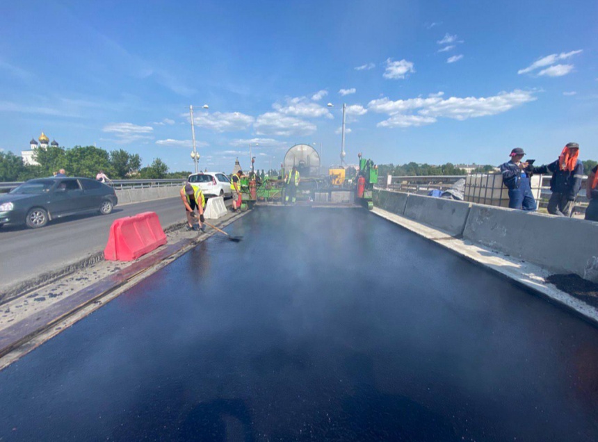 По его словам, в настоящее время на второй половине Ольгинского моста дорожники начали укладывать литой асфальтобетон.