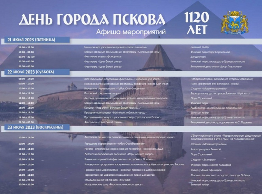 Опубликована программа празднования 1120-летия Пскова. Программу в своем телеграм-канале опубликовал глава Пскова Борис Елкин.