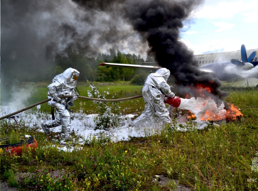 В отработке совместных действий по ликвидации последствий жесткой посадки самолета были задействованы пожарная охрана, пожарно-спасательные отряды МЧС России по Псковской области и администрация объекта.