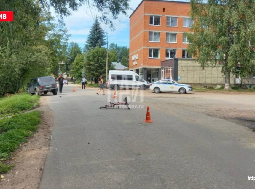 Инцидент произошел у дома №4 по улице Набережной в Опочке. Юный велосипедист въехал в автомобиль Niva.