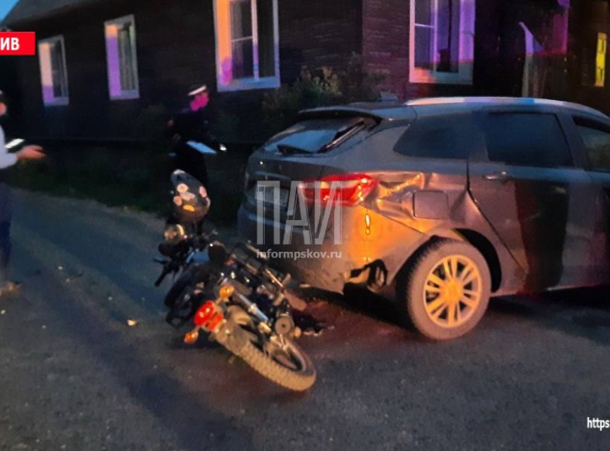 Столкновение подростка на мотоцикле и автомобиля LADA Vesta произошло 27 июля у дома №19 в деревне Разувайка в Опочецком районе.