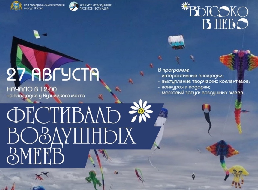Глава Пскова подчеркнул, что кульминацией фестиваля «Высоко в небо» станет массовый запуск воздушных змеев. «Этот проект стал одним из победителей городского конкурса грантов «Есть идея»!» – добавил градоначальник.