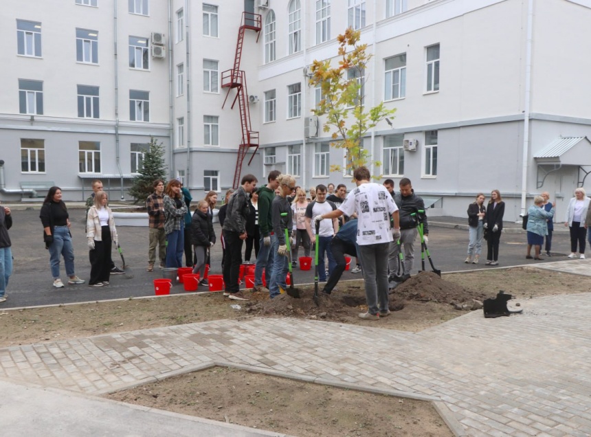 В посадке растений во внутреннем дворе участвовали сотрудники университета.