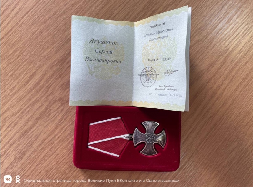 Орден Мужества вручили брату военнослужащего из Великих Лук Сергея Якушенка, героически погибшего при выполнении задач в ходе специальной военной операции. Об этом «Псковской правде» сообщили в пресс-службе городской администрации.