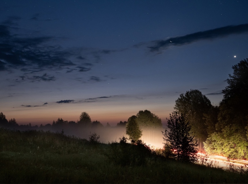 Запечатлеть недавно открытую комету удалось в предрассветном тумане низко-низко над горизонтом. Сергей Попов уточнил, что её не получилось бы увидеть в бинокль.
