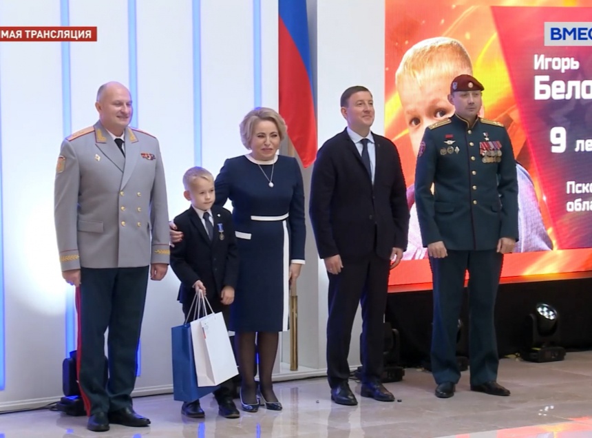 Девятилетнего Игоря Белова из Плюссы, спасшего девочку из воды, наградили медалью «За проявленное мужество». Награждение состоялось 1 ноября в Совете Федерации РФ в Москве в рамках десятой церемонии вручения наград детям и подросткам, которые проявили мужество в экстремальных ситуациях и спасли человеческие жизни. Прямая трансляция велась в группе Совета Федерации в соцсети «ВКонтакте».