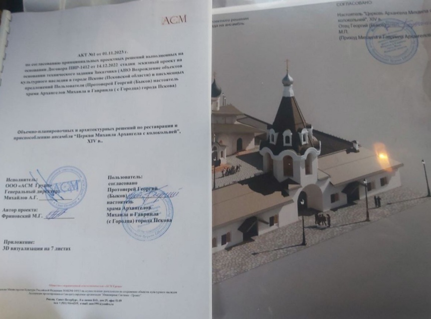 Настоятель церкви Архангела Михаила с Городца в Пскове, отец Георгий Быков утвердил решения по реставрации и приспособлению храма. Об этом сообщается в Телеграм-канале АНО «Возрождение объектов культурного наследия в Пскове и Псковской области».