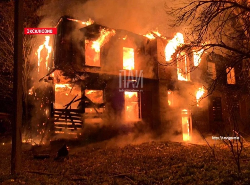 Нежилой двухэтажный дом сгорел в Печорах. Об этом сообщается в Телеграм-канале «ПАИ. Псковская сводка».