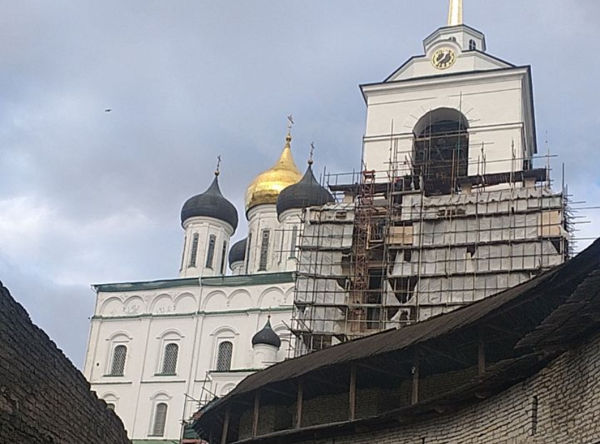 На колокольне Троицкого собора оборудуют строительный тепляк для работы реставраторов в зимний период. Об этом сообщается в Телеграм-канале АНО «Возрождение объектов культурного наследия в Пскове и Псковской области».