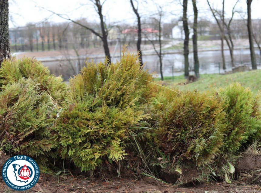 В настоящее время благоустраивается прилегающая территория. Здесь планируют высадить туи, которые Великолукская межрайонная больница получила от Псковской областной клинической больницы по распоряжению главврача Евгения Панферова.