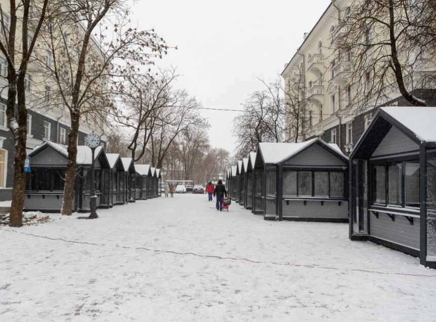 Борис Елкин подчеркнул, что бóльшая часть работ в рамках обновления ярмарочного пространства на улице Пушкина завершена. На данном этапе специалисты устанавливают опоры для иллюминации – светового потолка «Звездное небо».
