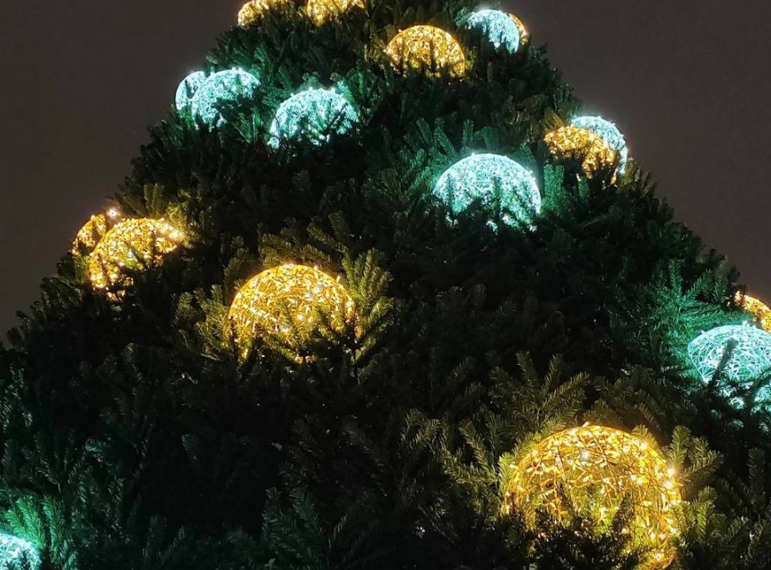 На главной ёлке Великих Лук в тестовом режиме включили иллюминацию. Об этом «Псковской правде» сообщили в пресс-службе городской администрации.