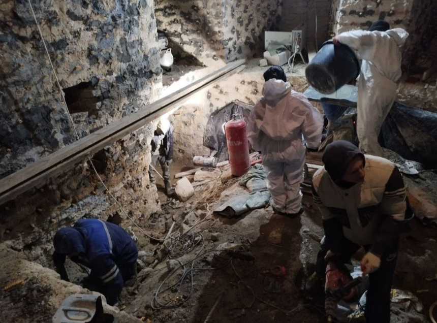 Реставраторы продолжают укреплять фундаменты и стены башни инъектированием.