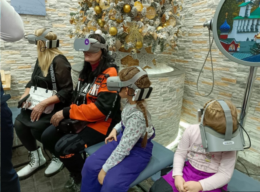 Благодаря VR-очкам посетители могут не только посмотреть фильмы про Псковскую область, но и про другие города России. Кроме того, там транслируются видеоролики на разные тематики.