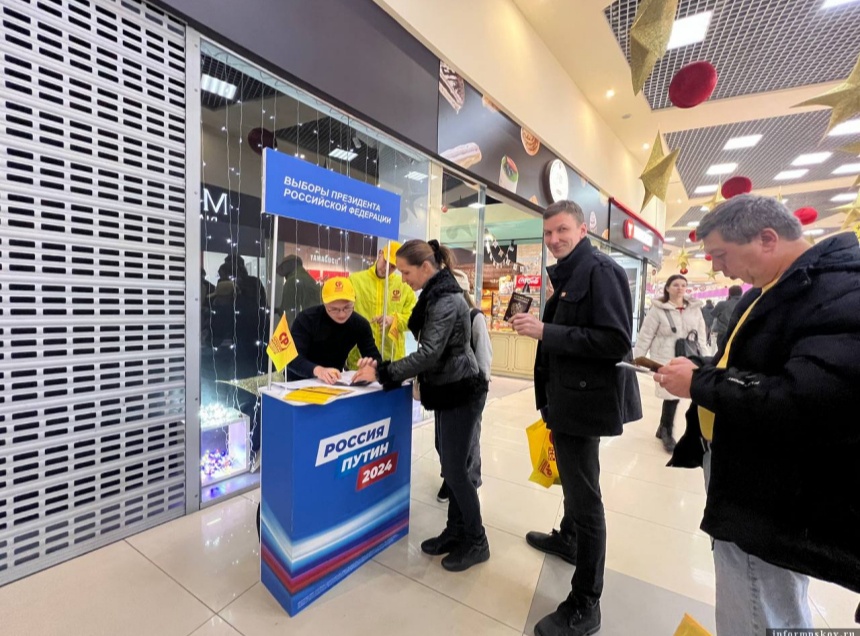 Пикеты по сбору подписей в поддержку выдвижения Владимира Путина на выборы работают с 17:00 до 20:00 в торговых центрах Пскова («Максимус», «Акваполис» и «Империал»), а также Великих Лук («Апельсин» и «Весна»).