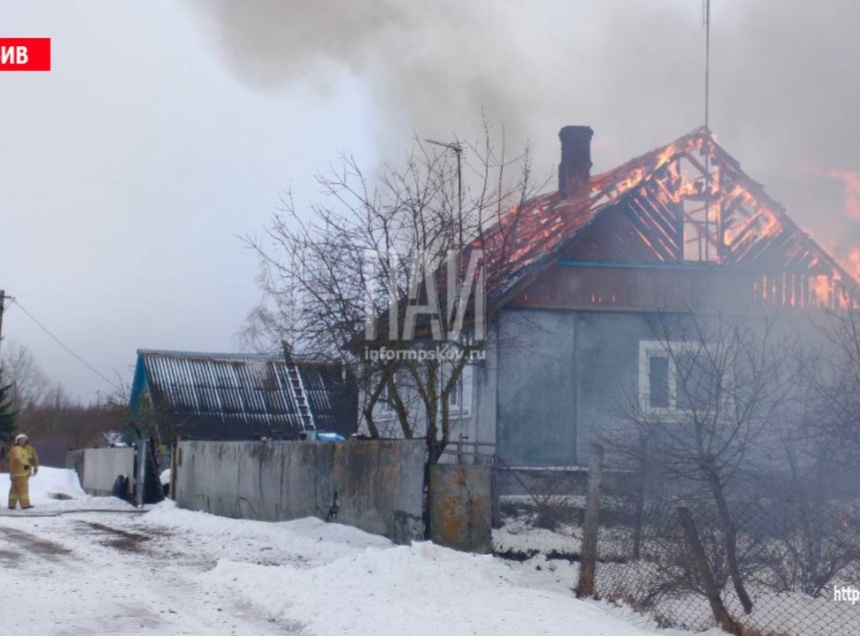 Пожар начался на улице Партизанская, 61. По имеющимся данным, хозяин жилища уехал в Псков к детям. На место прибыли пожарные, они ликвидируют возгорание. По предварительным данным, никто не пострадал.