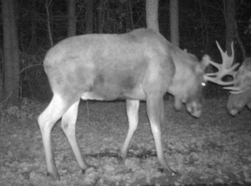 Два самца во время гона попались в фотоловушку в октябре 2023 года. Как отметили специалисты, брачный период у лосей начинается у лосей осенью и длится до наступления холодов. В это время животные могут попасться в любое время суток. «Самцы теряют обычные для них спокойствие и осторожность, могут ломать рогами ветки и молодые деревья, выбивать копытами ямы», – отметили сотрудники заповедника и добавили, что с помощью фотоловушек удается наблюдать за жизнью обитателей.