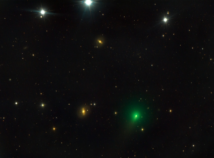 В одном кадре с кометой Цзыцзиньшань псковскому астроному-любителю также удалось запечатлеть галактики NGC 4596 и NGC 4608 в созвездии Девы.