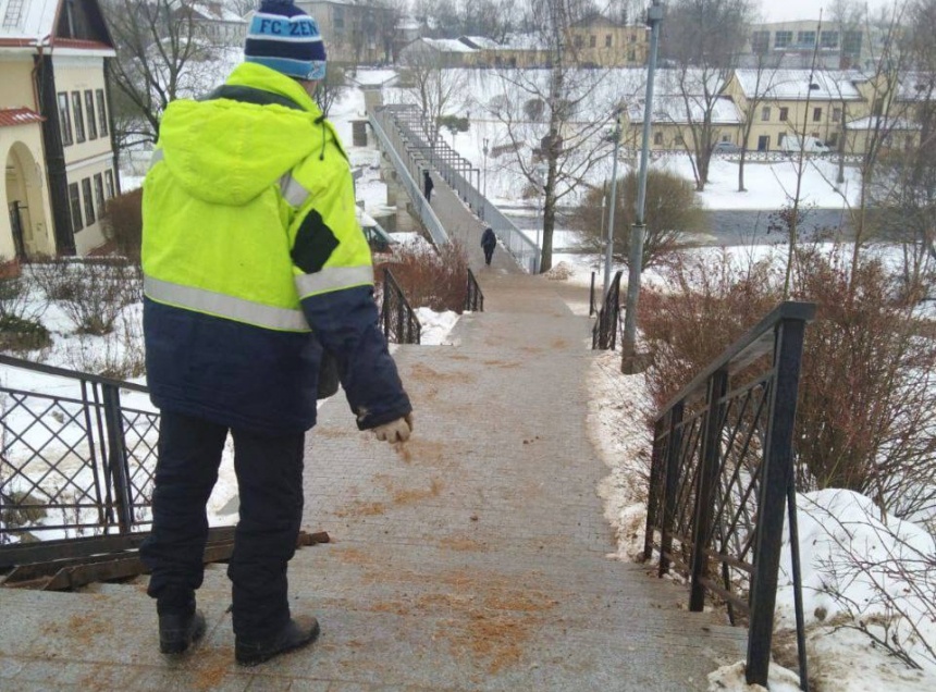 Противогололедную обработку дорог, мостов и тротуаров проводят в Пскове. Об этом в своем Телеграм-канале сообщил глава города Борис Елкин.