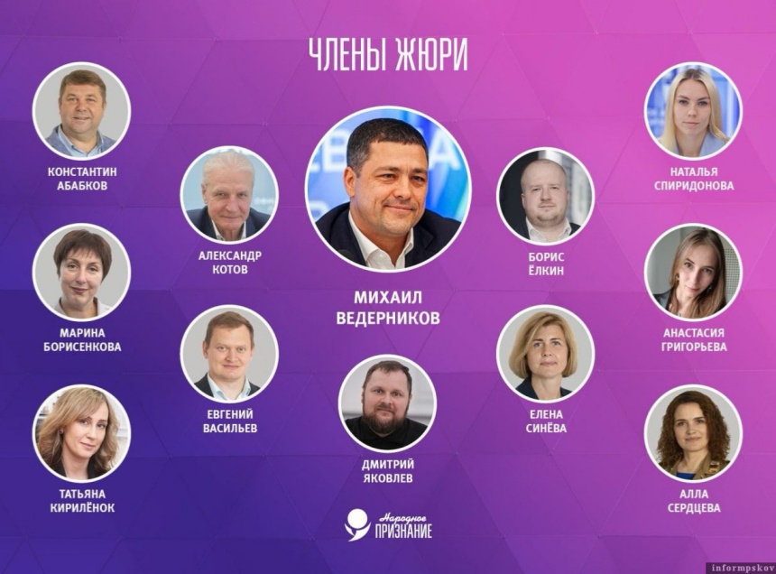 В этом году в состав жюри вошли 12 человек. Среди них председатель Псковского областного Собрания депутатов Александр Котов, врио председателя комитета по молодежной политике Псковской области Дмитрий Яковлев, глава Пскова Борис Елкин, руководитель Центра управления регионом Псковской области Анастасия Григорьева, депутат Псковской городской Думы, руководитель Псковского регионального отделения Всероссийского общества инвалидов Марина Борисенкова.