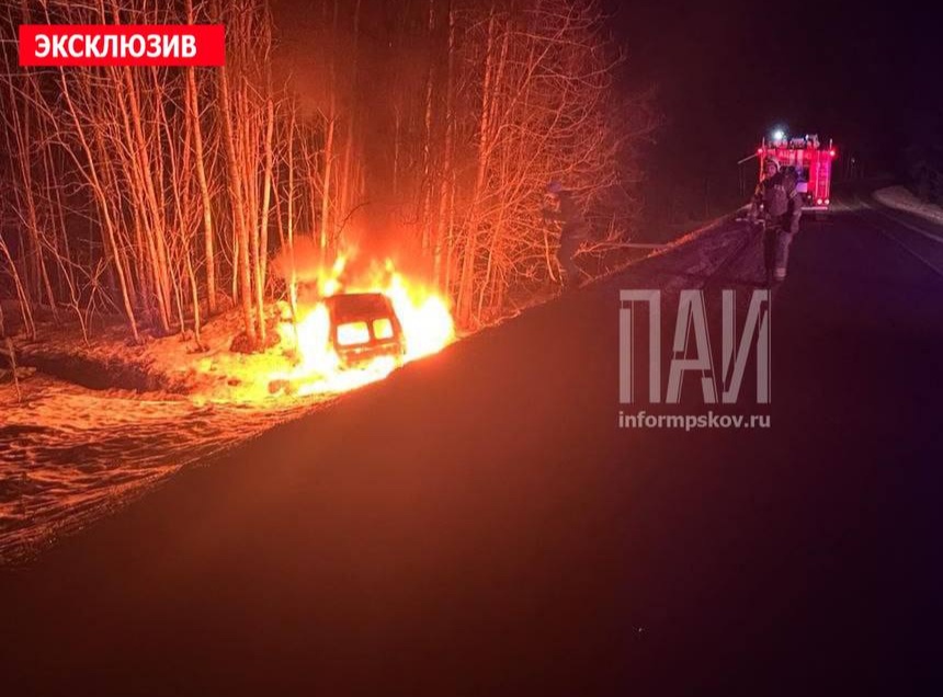 Ночью 5 марта в Печорском районе автомобиль вылетел в кювет и загорелся. Об этом сообщает Телеграм-канал «Псковская сводка ПАИ».