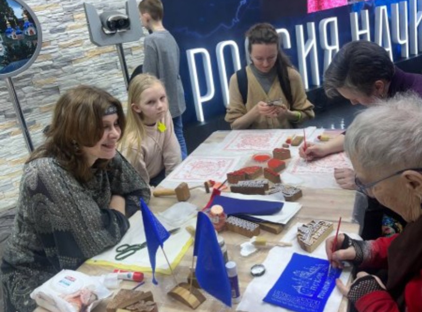 Мастерская «Псков резной» проводит мастер-классы по русской тканевой набойке. Гости стенда изготавливают чайные салфетки и флажки с псковской тематикой. Также на выставке представлена выставка работ мастерской.