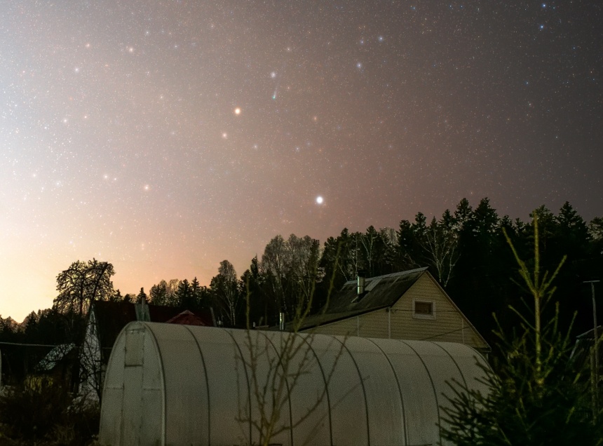 Галактику и комету запечатлели на ночном небе в Псковском районе. Фото в группе «АстроПсков» в «ВКонтакте» разместил астроном-любитель Петр Митрофанов.