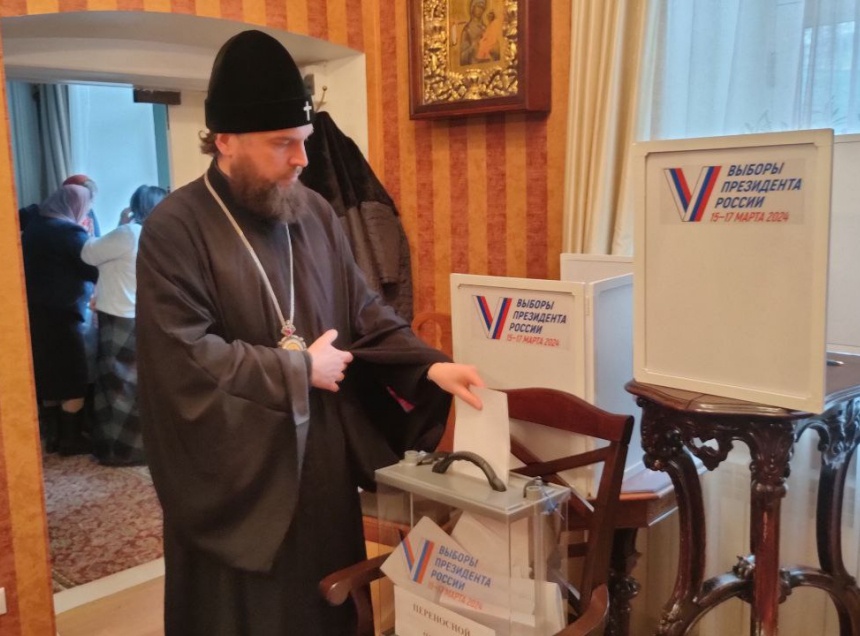 В традиционном выездном голосовании участвует и братия печерской обители.