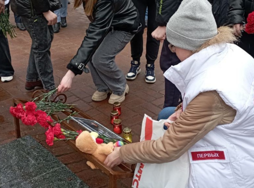 Жители Псковской области несут цветы к стихийным мемориалам в память о погибших в Москве. Таким места появились практически во всех районах региона.