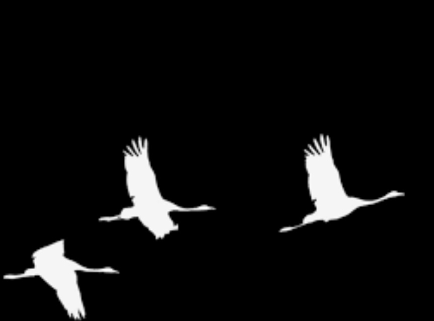 Клин журавлей символизирует души погибших людей, которые обрели бессмертие.